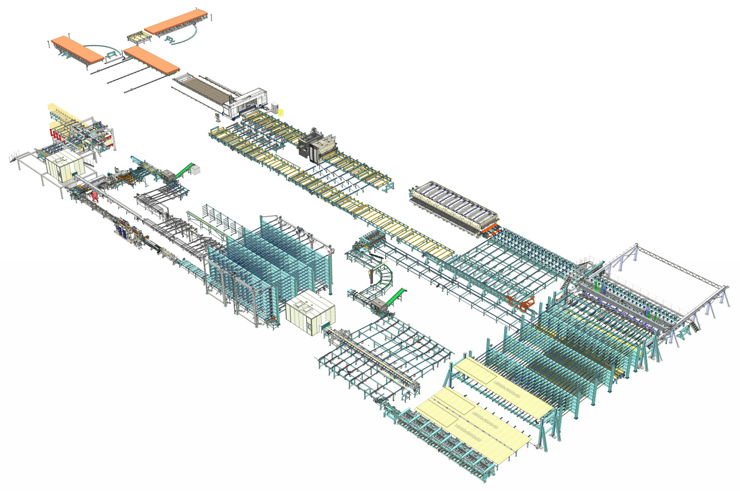The entire CLT production line is controlled with the X-Lam Manager, a PC-based master computer system developed by Ledinek Engineering that provides production management, production flow control and visualization, statistics, real-time information and production analysis tools.