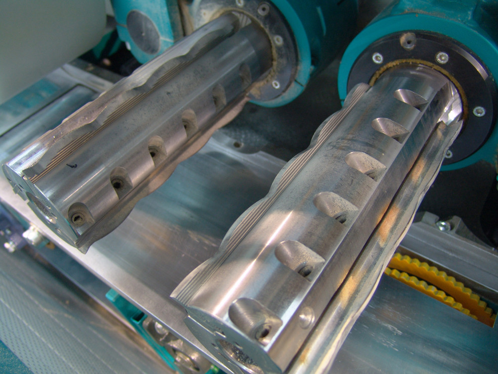 Both milling units feature innovative and dynamic tool motion. Radial and axial motion of both profiling spindles occur by means of eccentric drives. The eccentric strokes are manually adjustable. All drives are electronically interconnected which allows precise synchronization between cycling and feed. The frequency of radial and axial motion is continuously adjustable in order to create various patterns.