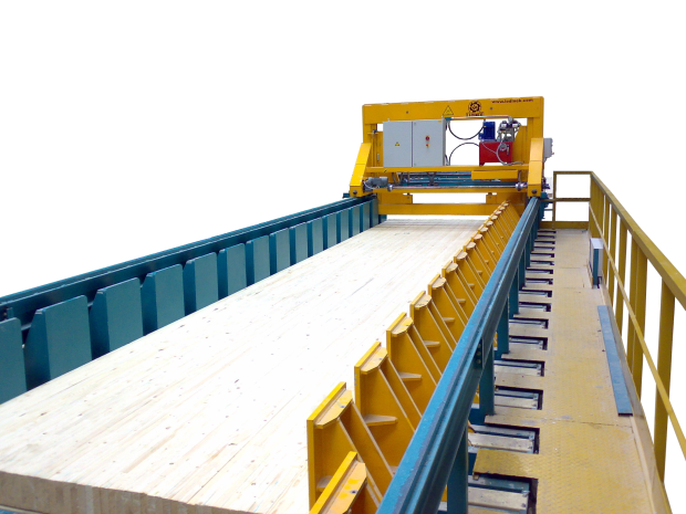 Horizontal band resaw. Excellent cut quality. For splitting of glulam. Strong and fast. Integration in automated lines.