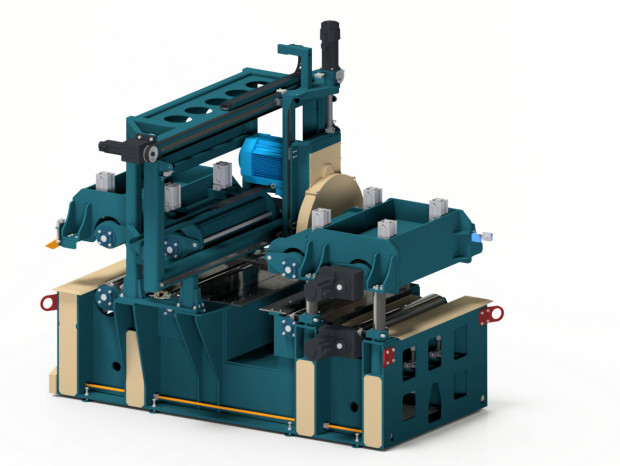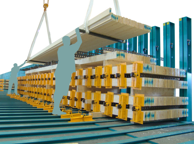 Top mounted press for commissioning goods. Straight glulam, DUO and TRIO beams. Stepped batches. Small footprint. Motorized clamping. Short loading and curing time.