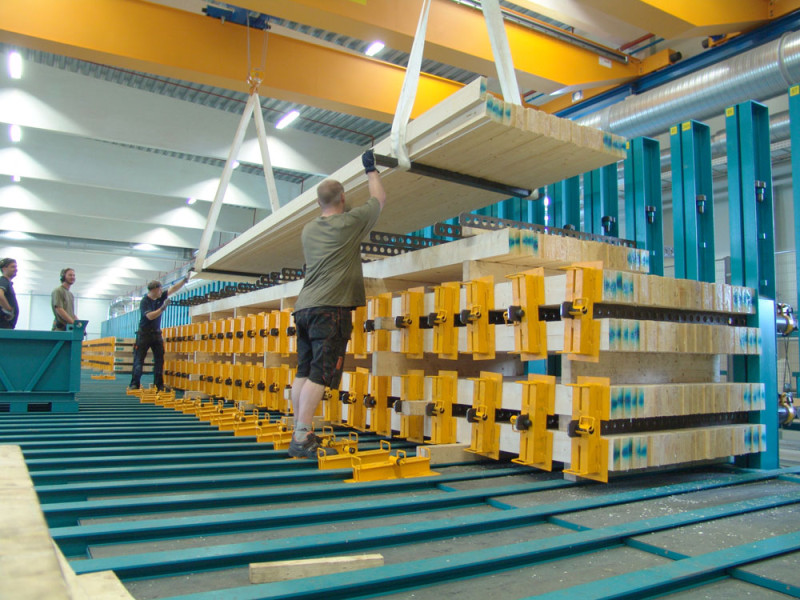 Pressing 4 pieces of 30 m long curved glulam requires lifting of 150 pressing shoes. By using the lighter press shoes, the required weight to be lifted in one pressing cycle is reduced for 800 kg!