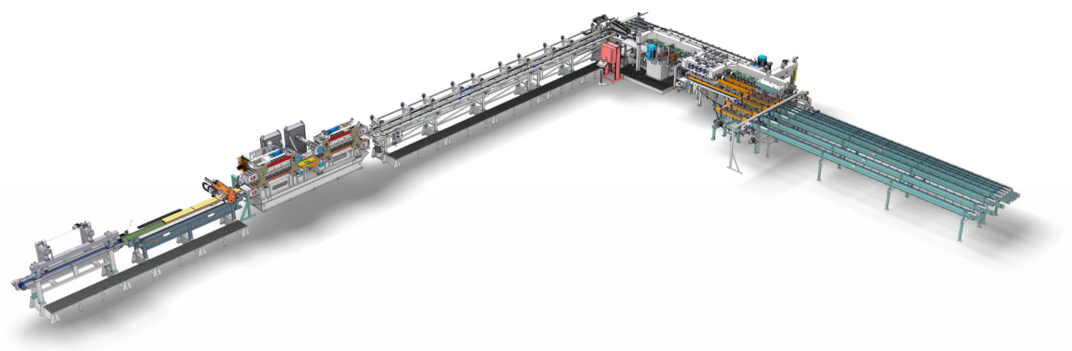 High capacity continuous single piece finger jointing system for boards of medium length and cross sections. Continuous joints or shoulder joints possible. Efficient and productive line for jointed boards of best quality.