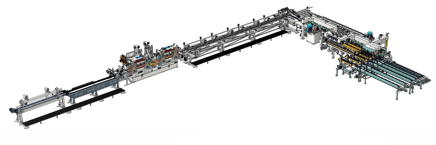 This line is especially suitable for production of edge jointed boards from lower grade timber. Due to high feed rate and continuous through feed press, high capacity can also be achieved with boards of shorter lengths, which makes the line especially suitable for integration into optimizing lines. The single piece milling is insensitive to random lengths.