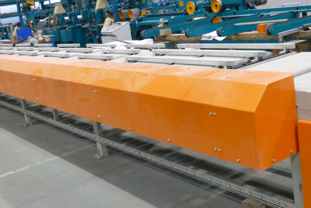 Die Leistenabzieher haben je nach Geschwindigkeit und Längsausrichtung 2 bis 4 Felder. Die Bewegung der Leisten von Feld zu Feld geschieht mit dynamisch ausgelegten Antrieben. Je nach Materialfluss der Anlage müssen Bretter oder Lamellen im Gleichlauf oder gegen die Vorschubrichtung ausgerichtet werden.