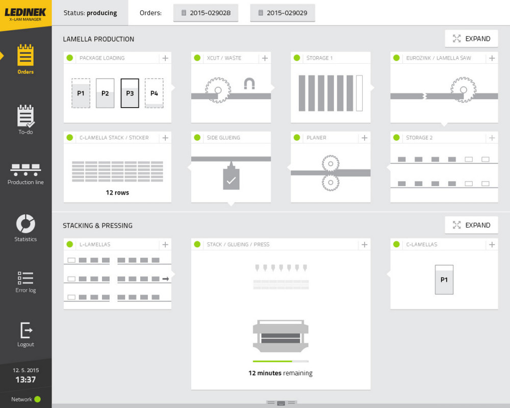 Comprehensive production facilities require real-time integration and communication between company management, sales, logistics, stock and production. For this purpose, we build and programme our own PC-based process control systems for production lines which can easily communicate with enterprise resource planning and control system, and moreover offer centralized control and enhanced order management options.
