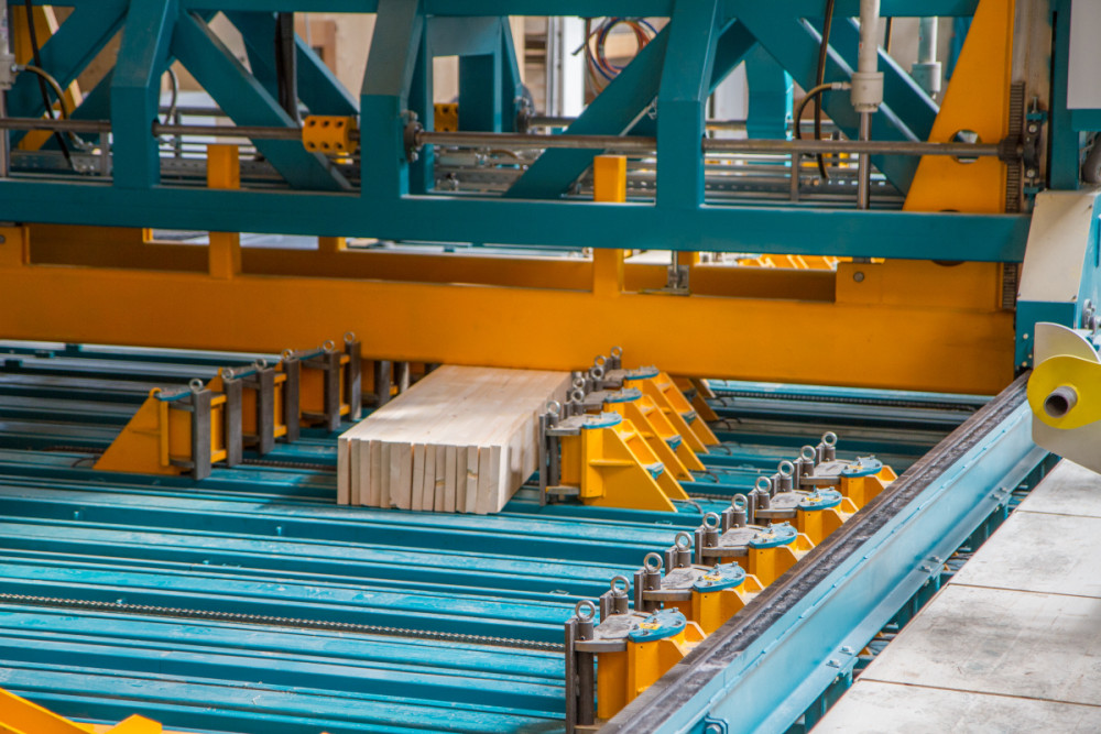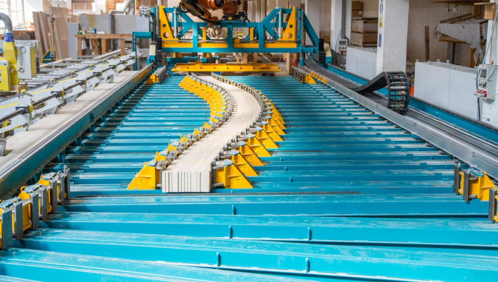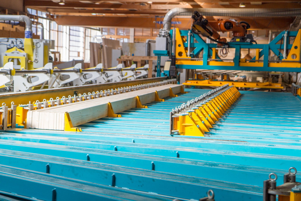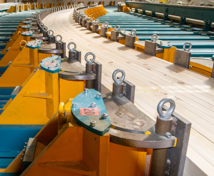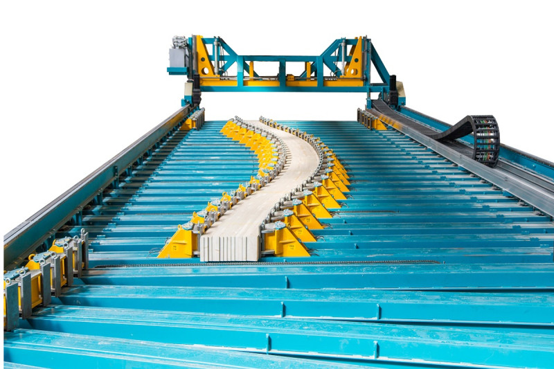 A fully automated press for production of curved laminated beams. POLYPRESS is designed for batch size 1 operation – from the drawing to the press, without any necessity for manual labour. For the first time, a single curved beam can be manufactured in an efficient and quick way, presenting an excellent possibility for affordable realization of most complex wooden structures.