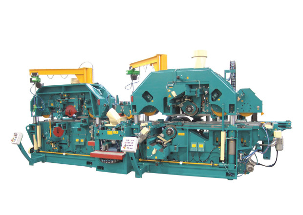 Žaga z dvojnim vertikalnim vretenom za horizontalno žaganje debelejših kosov lesa.