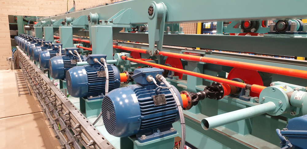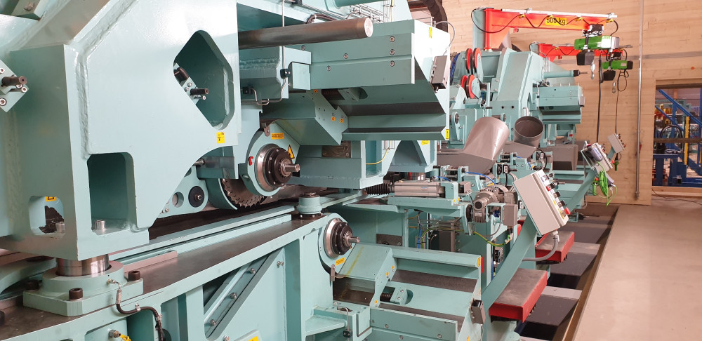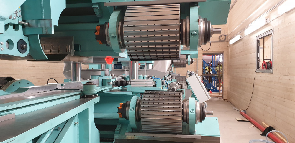 Everything about this machine revolves around speed, and everything is optimised for high speed feeding: big tools with the maximum number of planer knives, large feed rollers with a special cog and an elaborate transmission system that has to manage the immense power of its 200 kW drive motor, cooled table plates, pressure shoes and guide fences and high-tech ceramic coating.