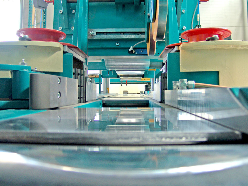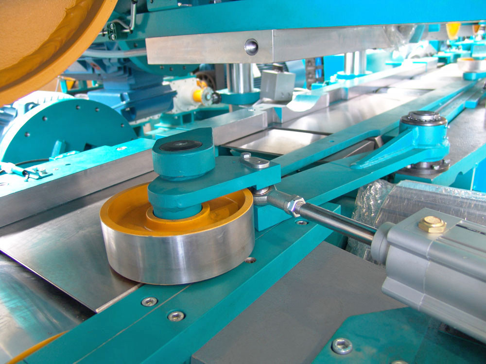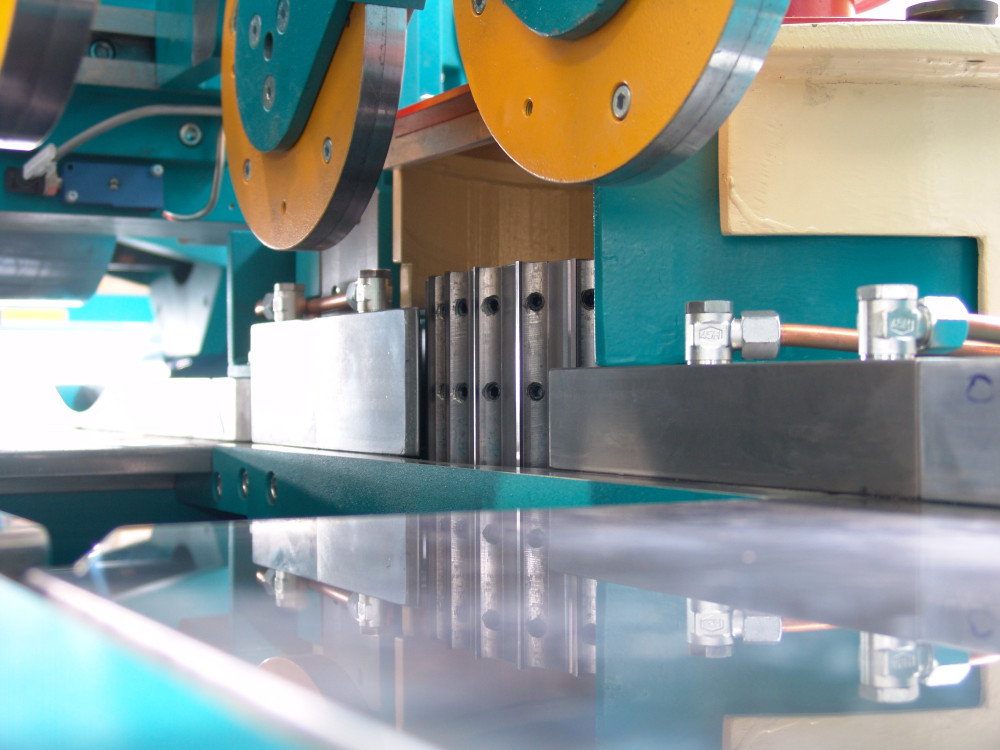 Board is pushed UP, against the fixed plate. final calibration to required thickness, due to variation of cutoff on the first shaft, all material has been saved on the thinnest spot.